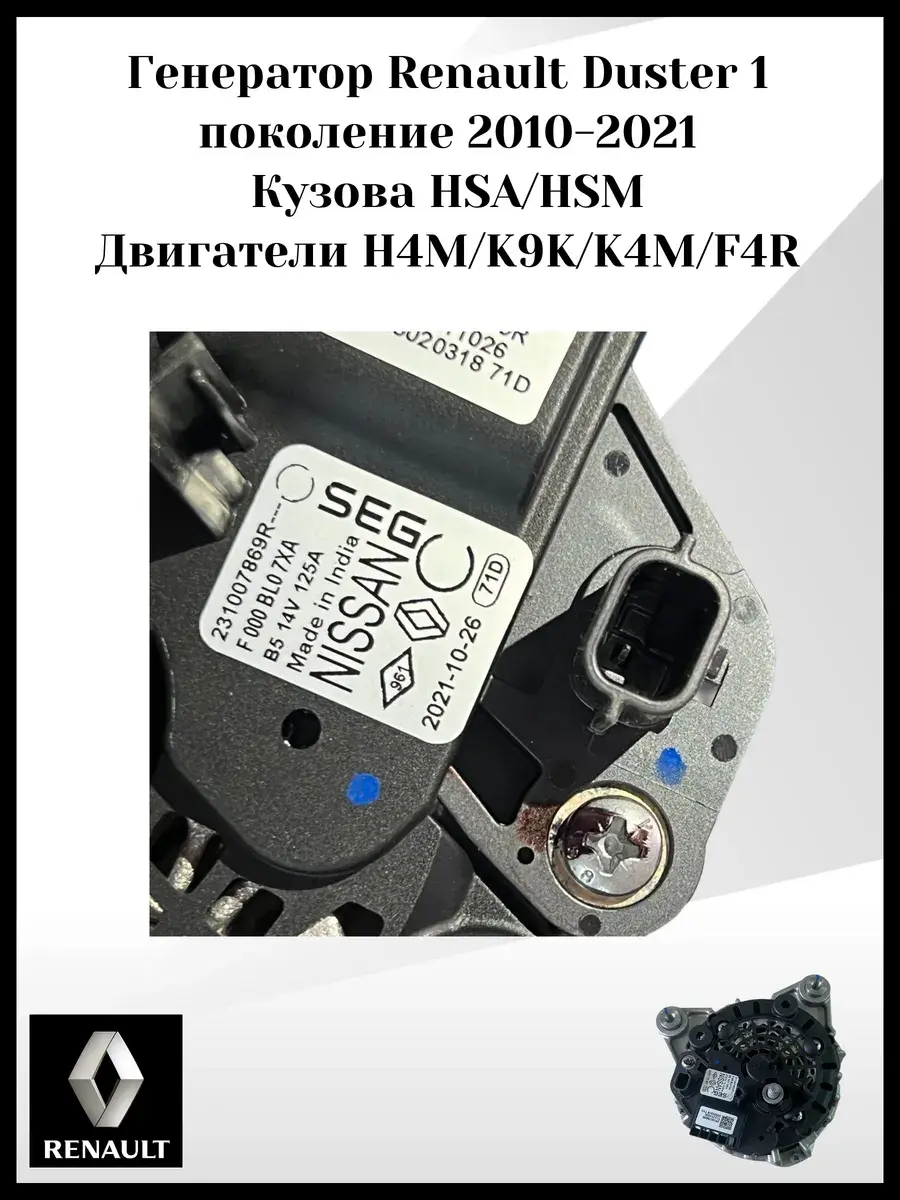 Генератор Renault Duster 1 поколения (2010-2021) – это надежный компонент, обеспечивающий бесперебойную работу электрической системы вашего автомобиля. Он гарантирует стабильное напряжение для всех электронных устройств, от фар и стеклоподъемников до системы зажигания и бортового компьютера. Этот генератор разработан специально для Renault Duster первого поколения, выпущенного в период с 2010 по 2021 год, и идеально подходит для замены старого или неисправного генератора. С его помощью вы вернете вашему автомобилю работоспособность и сможете продолжить наслаждаться комфортной ездой.