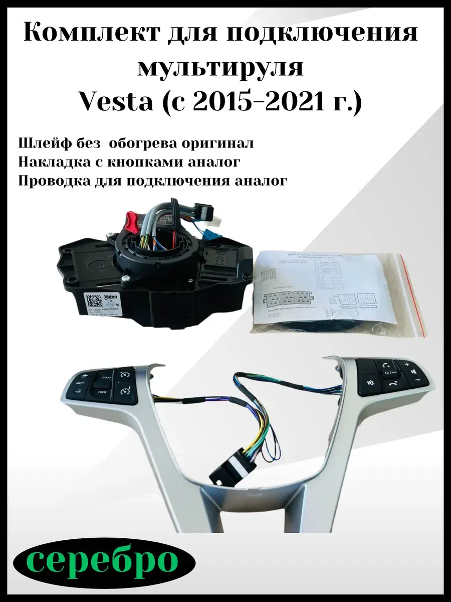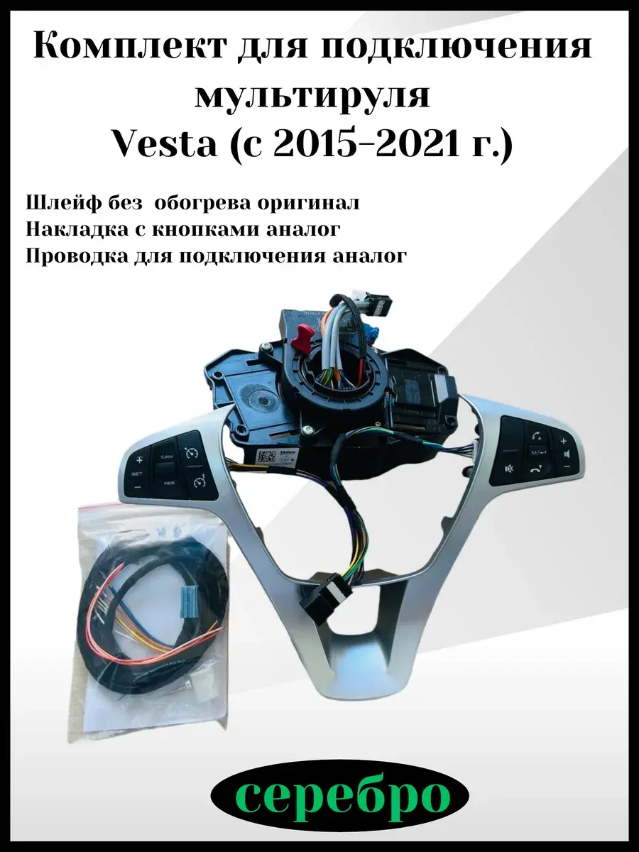 Комплект для подключения мультируля позволит вам наслаждаться комфортом и безопасностью во время вождения. Этот комплект, выполненный в стильном серебряном цвете, обеспечит надежное соединение мультируля с вашей автомобильной системой. Благодаря ему вы сможете удобно управлять аудиосистемой, навигацией и другими функциями автомобиля, не отвлекаясь от дороги. Установите комплект для подключения мультируля и сделайте свои поездки еще более приятными и безопасными. В комплект входит: Шлейф без обогрева оригинал; накладка с кнопками аналог; проводка для подключения аналог.