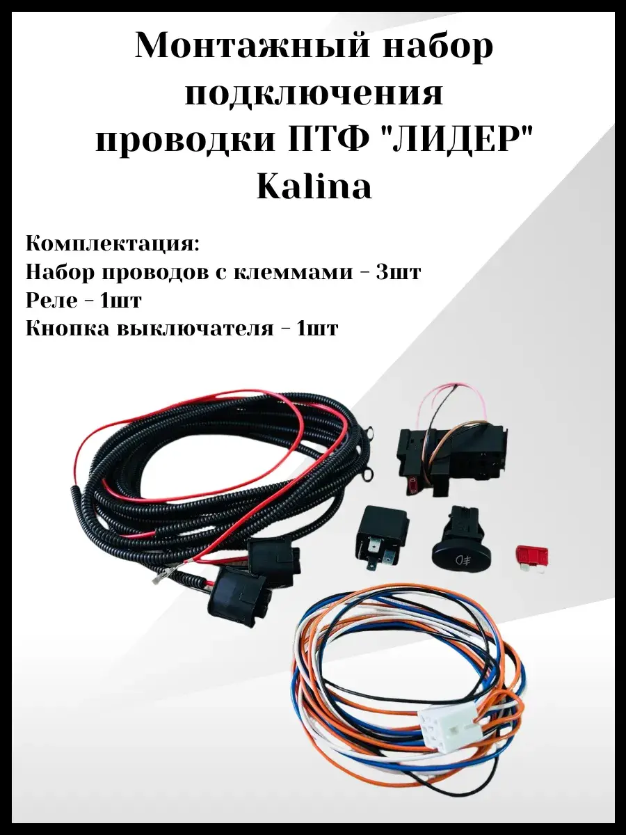 Монтажный набор подключения проводки ПТФ ЛИДЕР Kalina - это всё, что вам нужно для установки противотуманных фар. Набор включает в себя все необходимые провода, разъемы и крепежные элементы, обеспечивая быстрый и простой монтаж. С этим набором вы сможете безопасно и надежно подключить противотуманные фары, улучшив видимость на дороге в условиях ограниченной видимости. Установите ПТФ и почувствуйте уверенность за рулем в любую погоду.