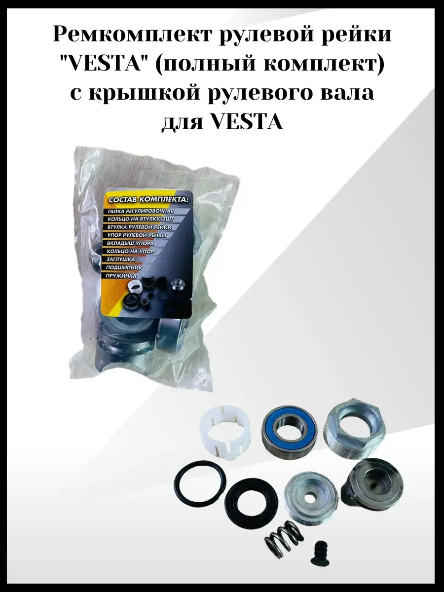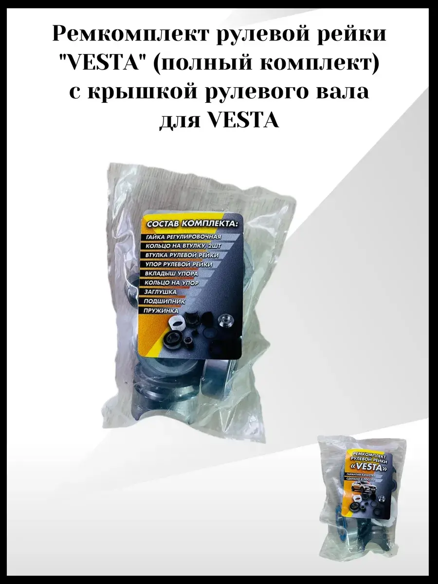 Ремкомплект рулевой рейки "VESTA" – это надежный выбор для восстановления работоспособности рулевого управления вашего автомобиля. Он включает в себя все необходимые детали для ремонта, изготовленные из качественных материалов, что гарантирует долговечность и надежность. С помощью этого ремкомплекта вы сможете устранить люфт, стуки и другие неисправности рулевой рейки, вернув автомобилю точность и безопасность управления. Установка ремкомплекта "VESTA" позволит вам сэкономить на покупке новой рулевой рейки и продлить срок службы вашего автомобиля.