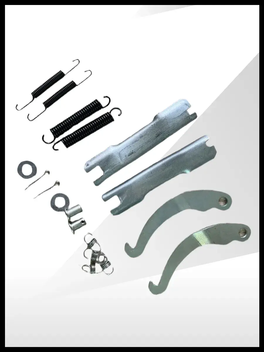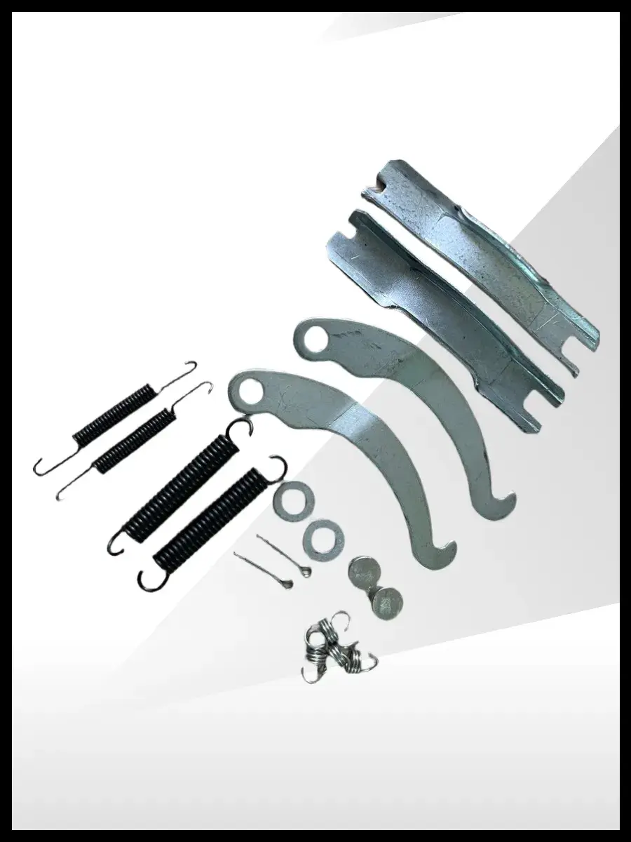 Ремонтный комплект задних тормозов (тормозных колодок), комплект идет на барабаны, используется при замене колодок. Если появился скрежет или не равномерное торможение, возможно биение или плохо держит ручник, иногда мало его "подтянуть", возможно дело в колодках. Пружины со временем изнашиваются и может быть мало заменить одни колодки.