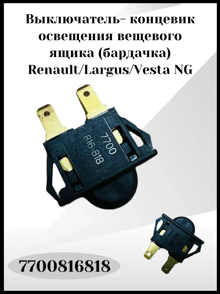 Выключатель концевик освещения вещевого ящика – это незаменимый компонент для обеспечения комфорта и безопасности в вашем автомобиле. Этот выключатель, установленный на вещевом ящике, автоматически включает свет при открытии крышки, обеспечивая удобный доступ к содержимому даже в темное время суток. Надежный механизм концевого выключателя гарантирует точное срабатывание, а его компактный размер позволяет легко интегрировать его в конструкцию вашего автомобиля. Установка выключателя концевика освещения вещевого ящика не требует специальных навыков и может быть выполнена самостоятельно.